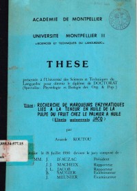 Recherche De Marqueurs Enzymatiques Lies A La Teneur En Huile De La Pulpe Du Fruit Chez Le Palmier A Huile